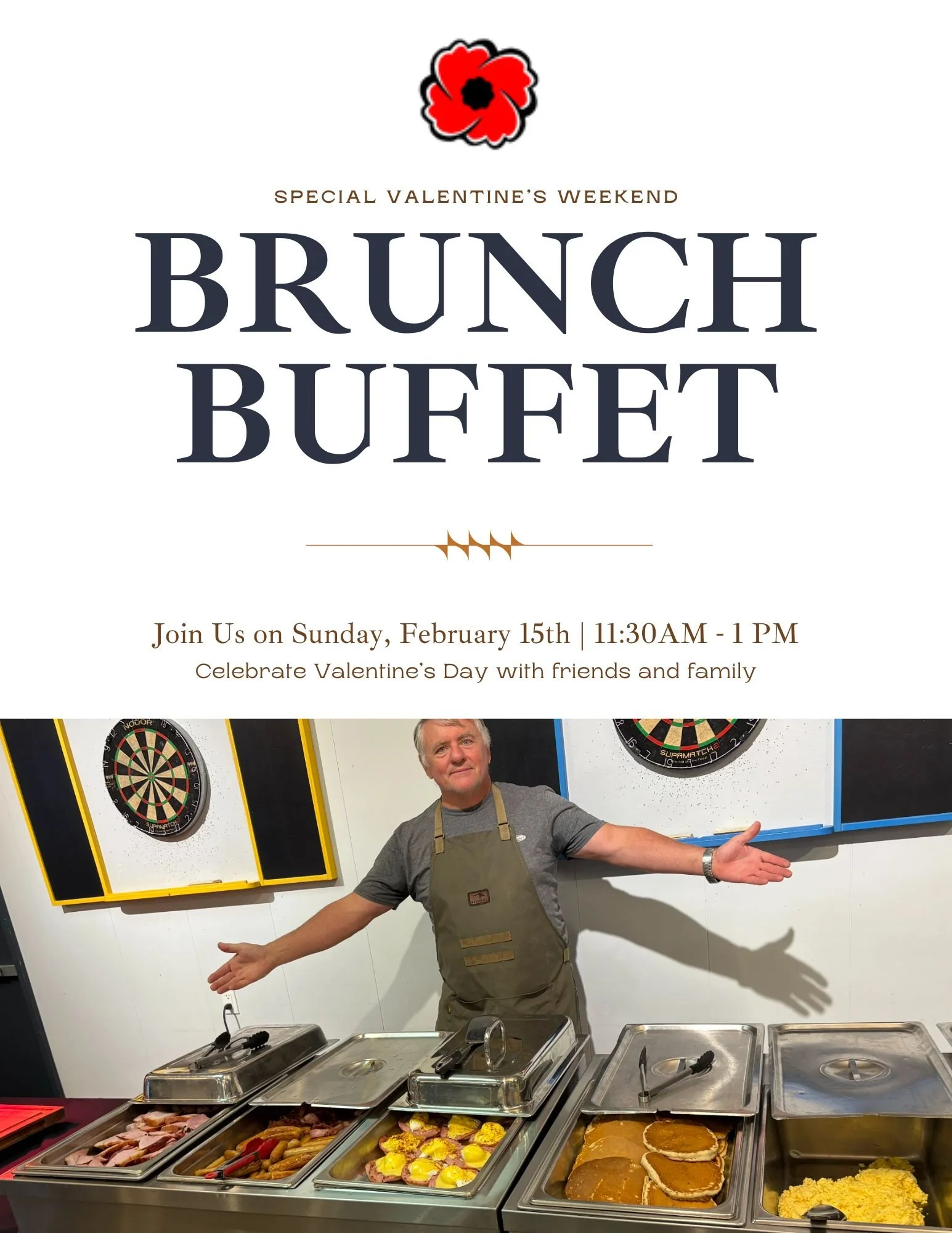 VALENTINE’S BRUNCH: Sunday February 15th Bring the whole family! Extensive buffet with all your breakfast & brunch favourites. Includes Mimosa (19+)